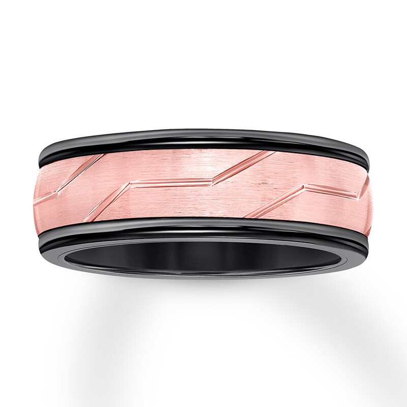 Shop for wedding bands for men at kay jewelers. Browse through our wedding rings and bands guide to find the wedding band you've been looking for. This wedding band is crafted of stainless steel and features black and rose ion plating.